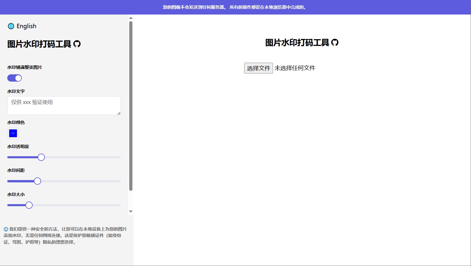 Image Watermark Tool 是一个开源项目,用户可以在本地设备上给自己的图片(如身份证、驾照、护照等)添加水印,无需任何网络连接,并具有轻松的一键网站部署功能。