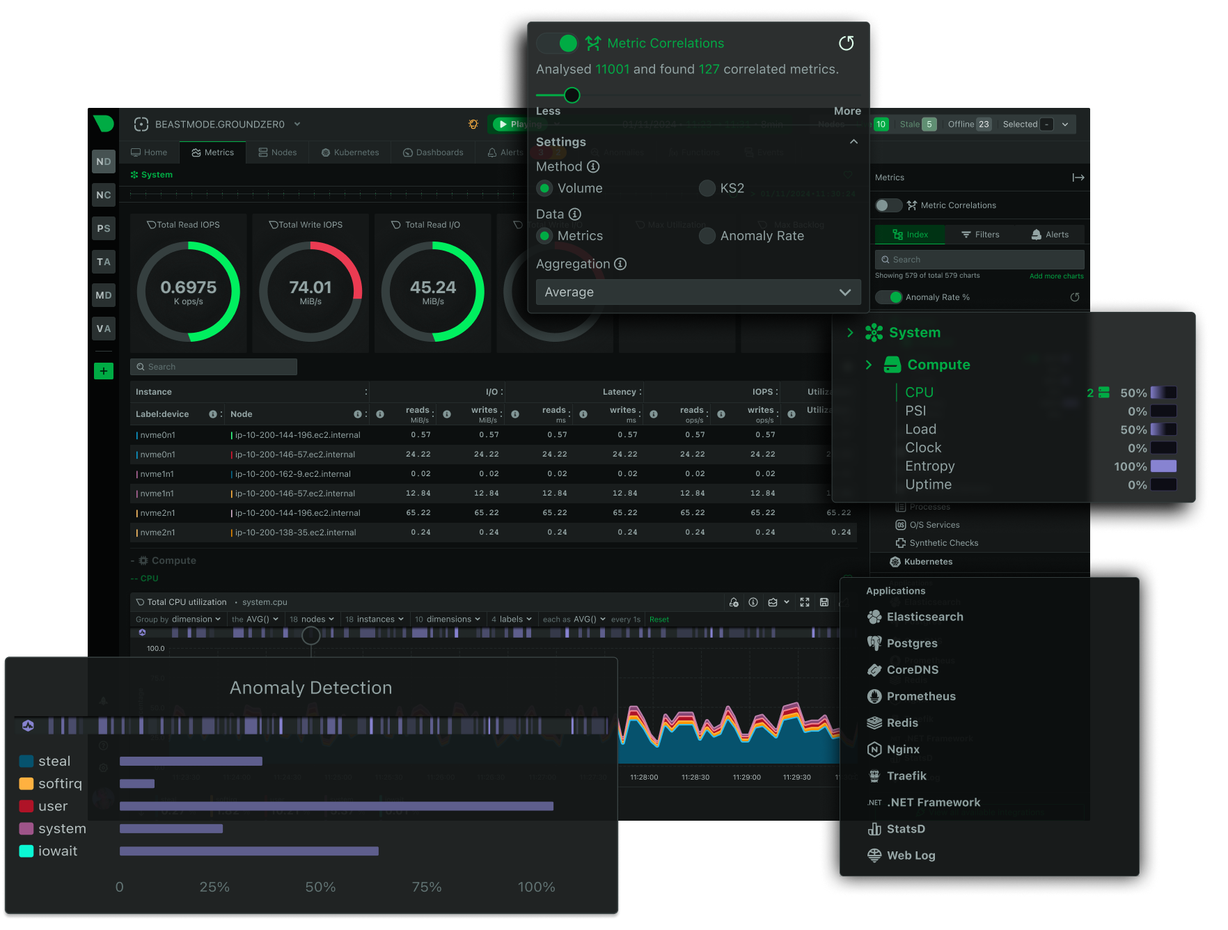 性能与精度 | • 每秒收集 • 实时可视化,延迟仅为 1 秒 • 高分辨率指标 |