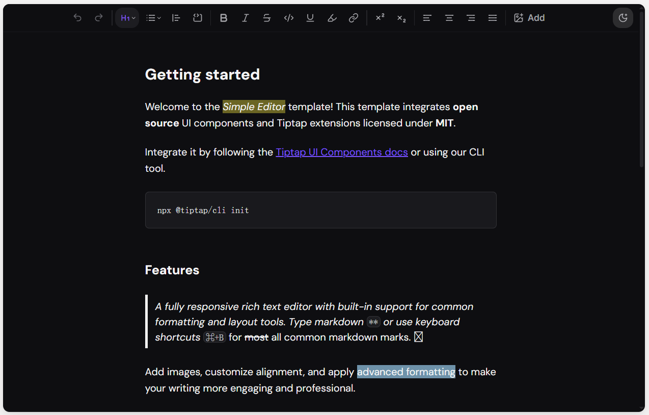 查看示例,了解 Tiptap 的实际应用,或查看并 fork 我们的 codesandboxes。